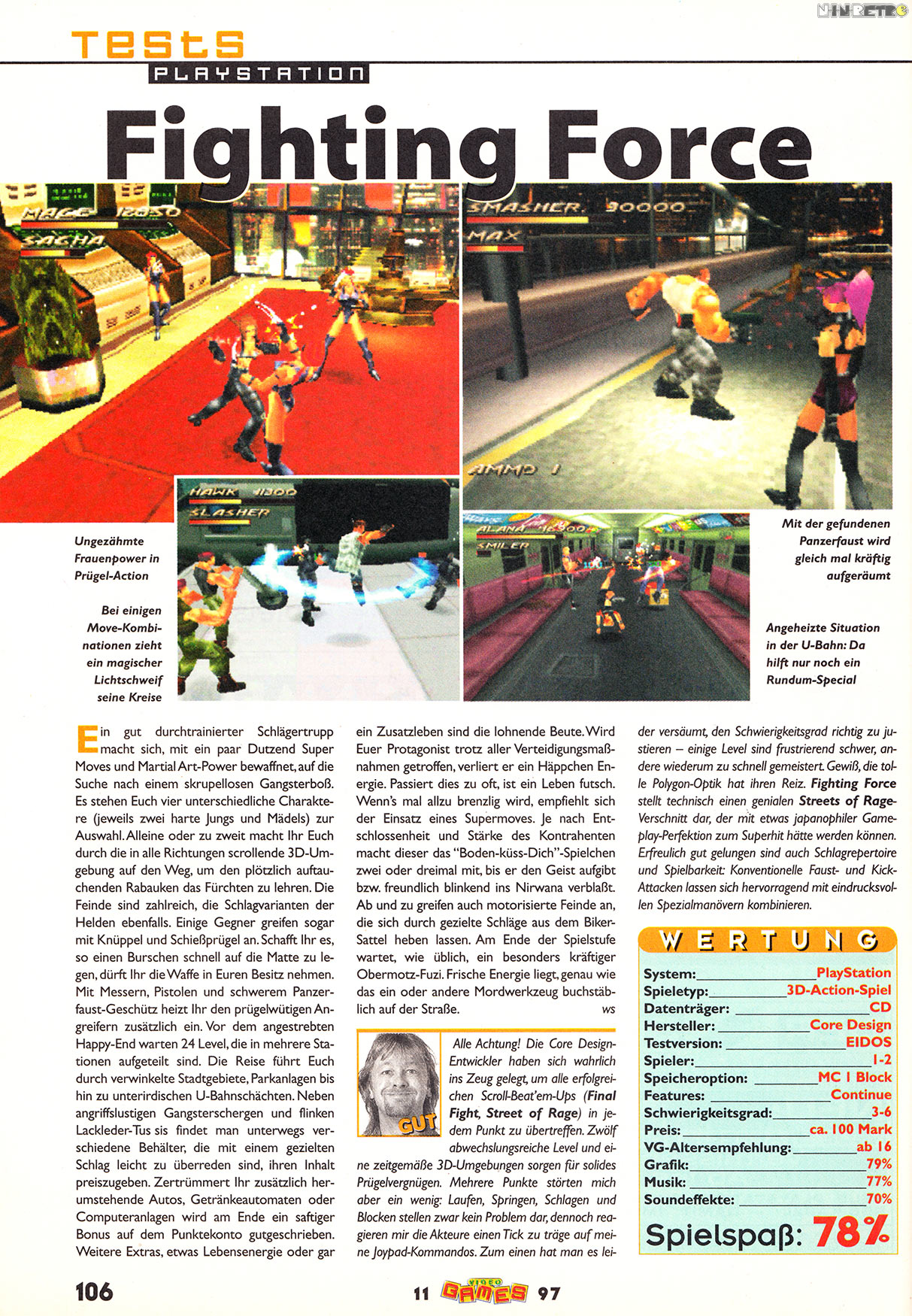 Trotz einer dezenten Eintönigkeit zum Ende hin, macht Fighting Force besonders zu zweit viel Spaß und ist alles in allem ein gutes Spiel.