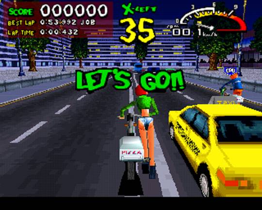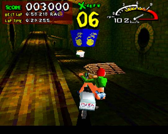 Jumpon your scooter and take up the challenge. Through the busiest streets in the world you've got to avoid trucks, cars, police, obstacles and people in a pizza fuelled dash for glory. Take the challenge and race your way across Paris, London, New York and the true home of Pizza - Italy!