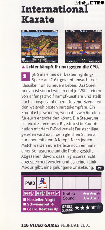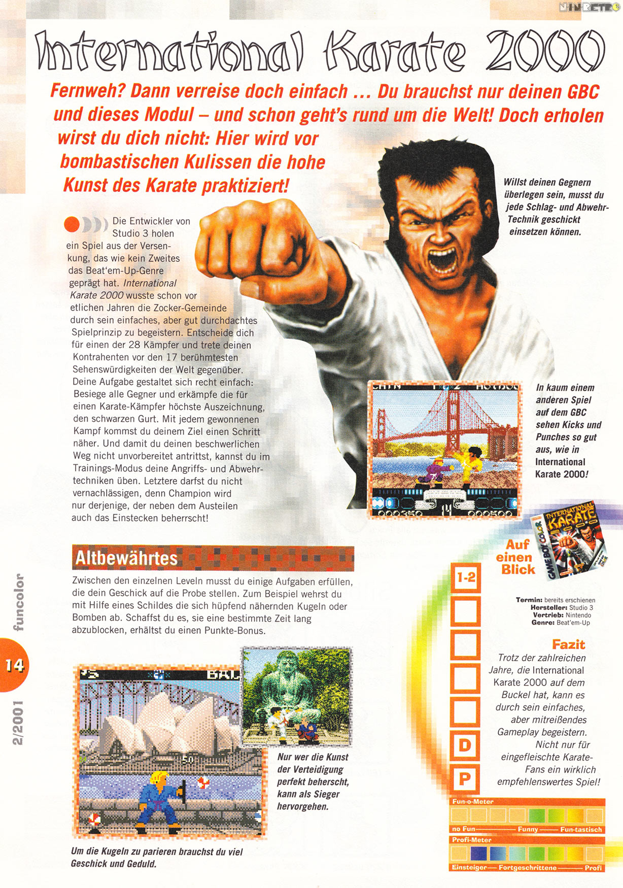 Werden Sie ein Meister der antiken Kampfkunst und treten bei International Karate 2000 gegeb die Besten der Besten an. Sie starten als Neuling mit dem weißen Gürtel und müssen die Dans meistern, indem Sie die verschiedenen Gegner bezwingen und so schließlich den ultimativen Preis gewinnen - den schwarzen Gürtel.