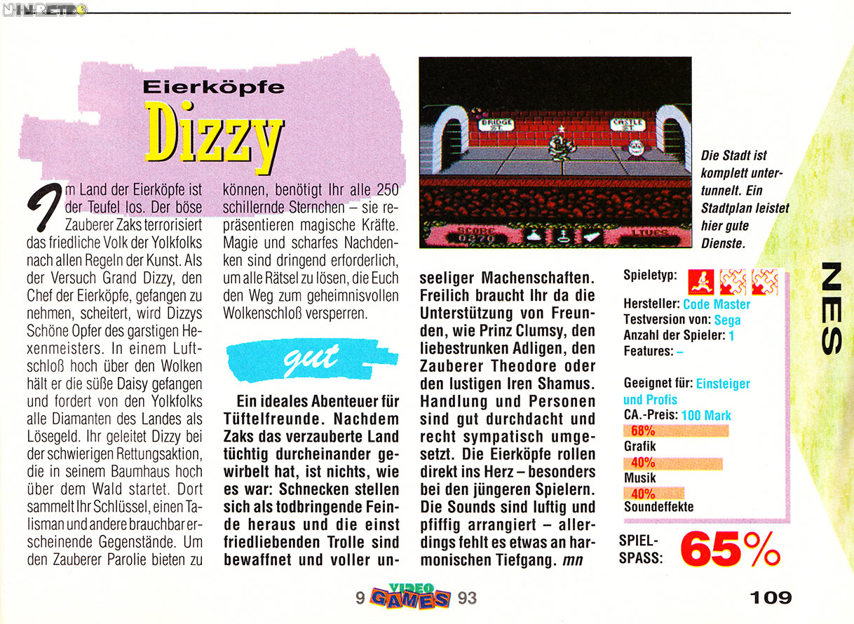 Für diejenige, die's interessiert: Die Gebrüder Oliver, die hinter den Dizzy-Spielen stecken, haben den Quellcode für ein komplettes, bislang unveröffentlichtes Dizzy-Abenteuer fürs NES auf ihrem verstaubten Dachboden gefunden, mit Hilfe eines Fans fertig gestellt und kompiliert, und für umme ins Netz gestellt. Das Ganze lässt sich nun schön lässig via NES-Emulator spielen. Hier geht's zum Zock.