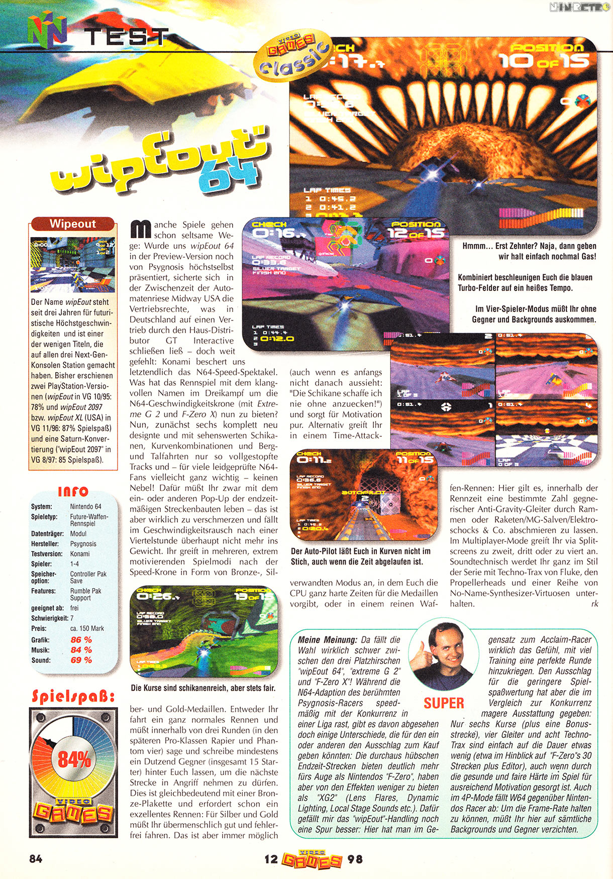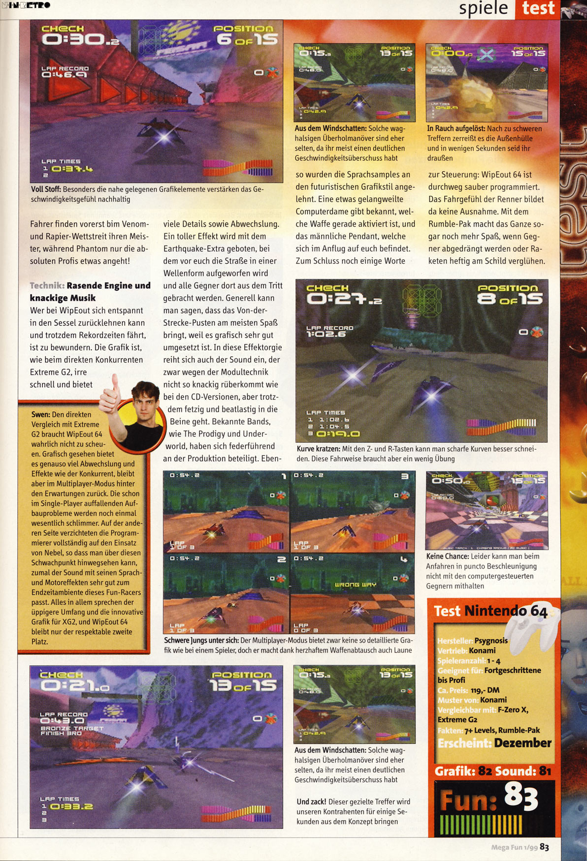 The fastest races. The deadliest weapons. The biggest name in anti-gravity racing descends on N64 with incredible new visual power and fully enhanced gameplay glory. With blistering races, challenges, time trials and a multiplay league, Wipeout 64 delivers pure racing devastation. Faster than you can imagine.
