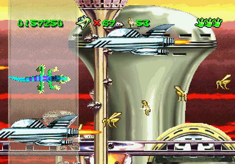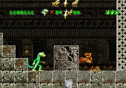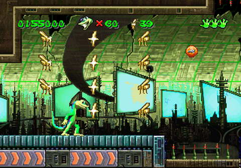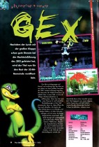 Gex muß mit Hilfe seines peitschenden Schwanzes und seiner Saugpfoten der Mediendimension entkommen! Über 450 Bilder mit 3D-Animation und manuell gestaltetem Hintergrund!